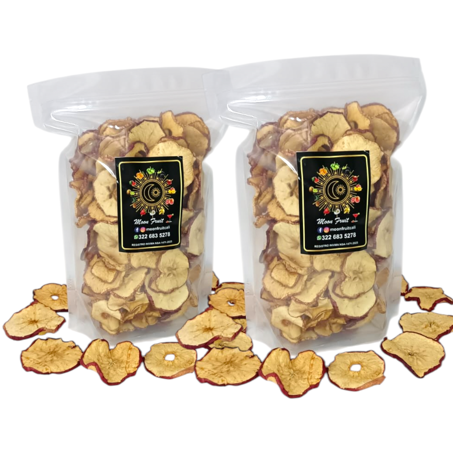 Rodajas de manzana deshidratada, resalta por su sabor citrico, baja en azucar natural ideal para saboprizar sodas.